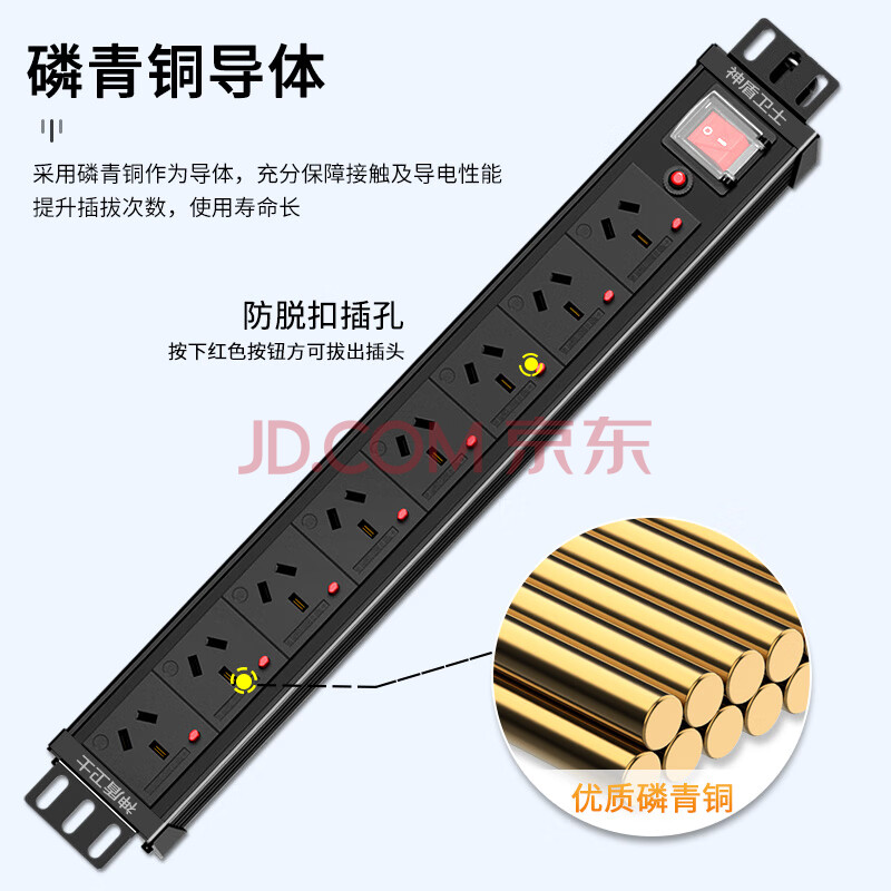 商品相册:神盾卫士(SDWS)PDU机柜插座8位16A大功率插线板新国标开关过载防脱插排可定制SC38657F第
