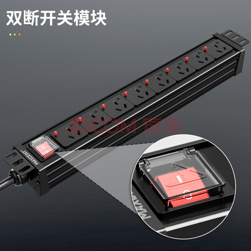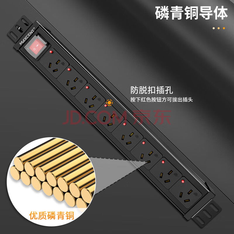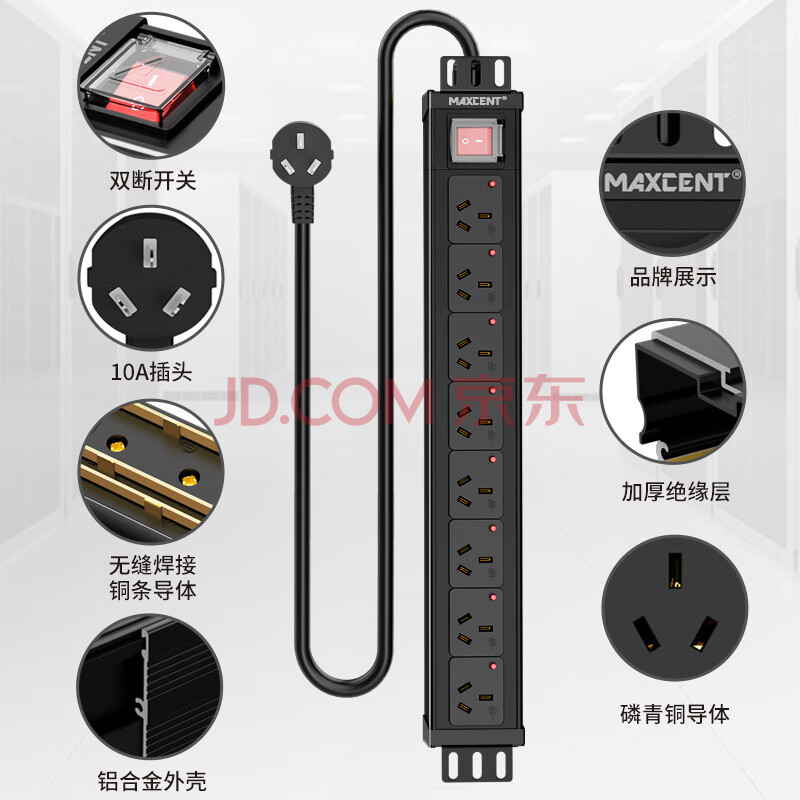 商品相册:麦森特(MAXCENT)PDU机柜插座8位10A大功率插线板新国标开关防脱插排可定制MC3805F第