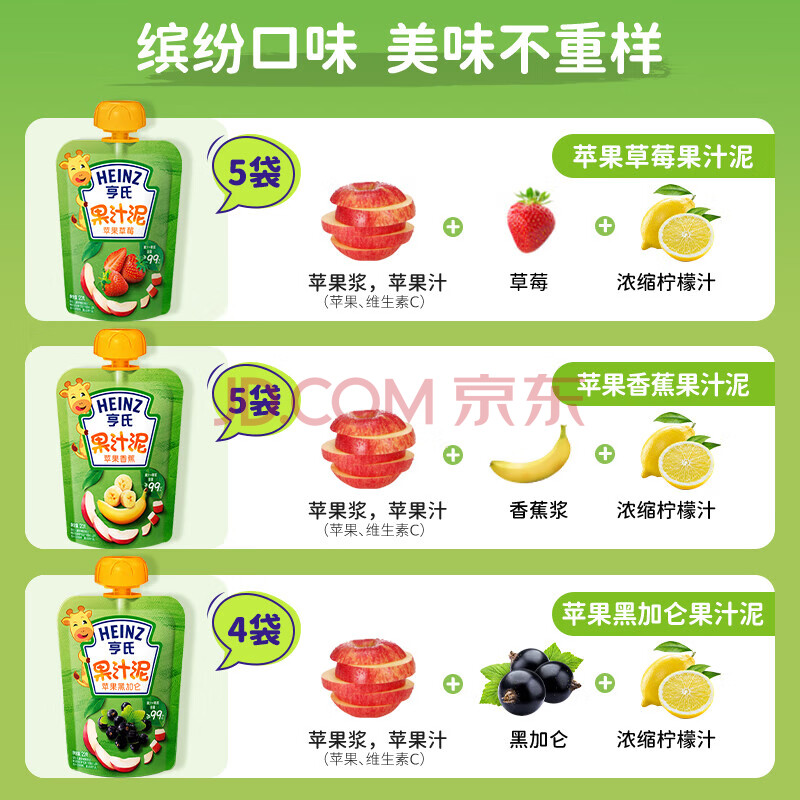 商品相册:亨氏(Heinz)宝宝水果营养果汁泥婴儿辅食零食无添加即食礼盒装6个月+ 120g*14第