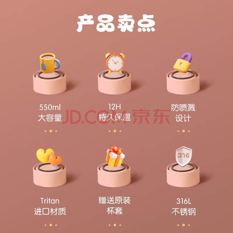 商品相册:FGA富光儿童保温杯316不锈钢带吸管水壶学生宝宝喝水杯双盖杯子蓝第