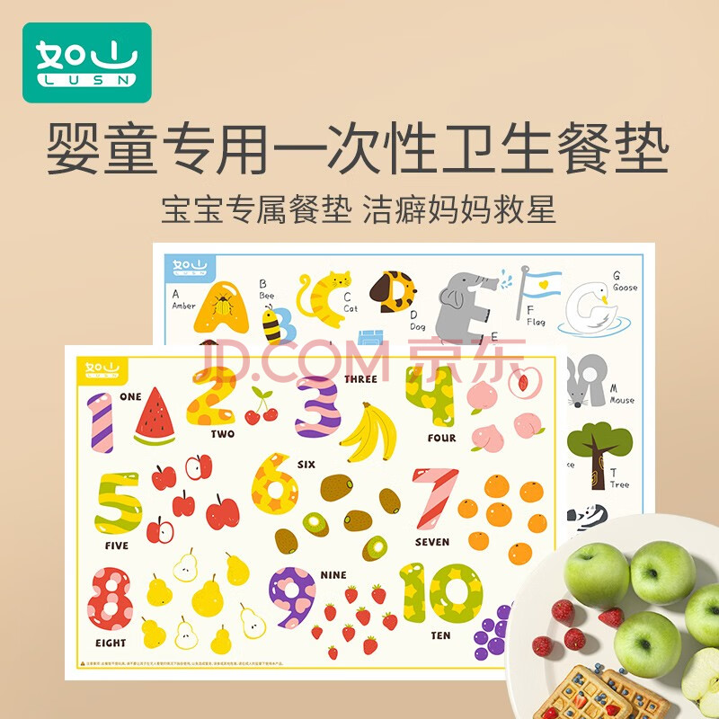 商品相册:如山宝宝一次性餐垫儿童便携防水隔脏桌布免洗桌垫10片装 数字款第