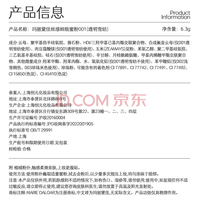 商品相册:玛丽黛佳丝感蜜粉定妆补妆遮瑕持久油皮适用01象牙白6.3g第