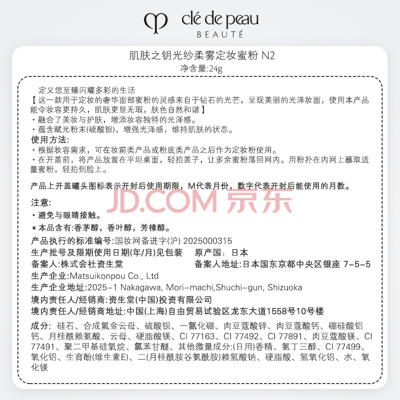 商品相册:肌肤之钥(CPB)光纱柔雾蜜粉24g#N2自然色生日礼物送女友第1张/共4