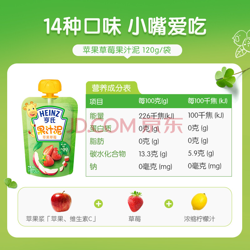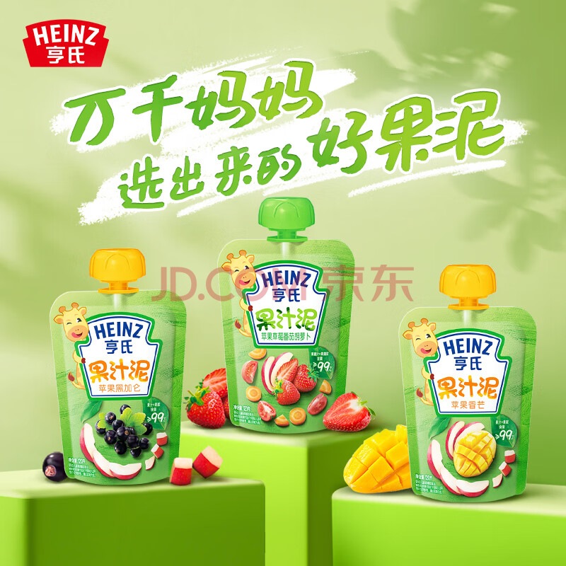 商品相册:亨氏(Heinz)宝宝婴儿辅食零食水果苹果香芒香蕉黑加仑无添加果汁泥礼盒 720g第