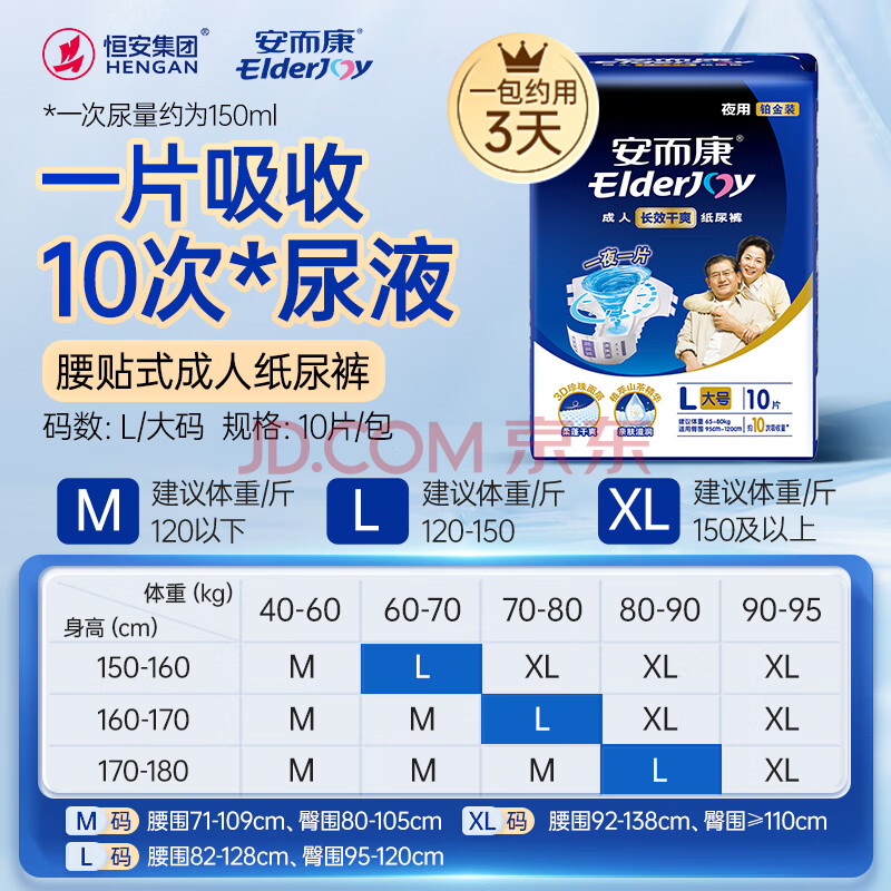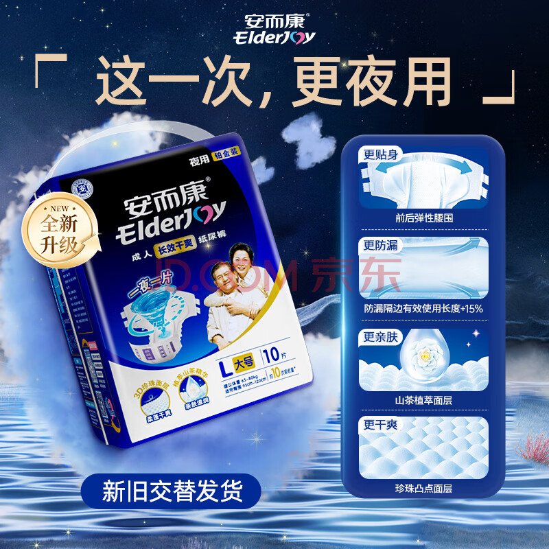 商品相册:安而康(Elderjoy)长效干爽成人纸尿裤L10片臀围95-120cm成人尿不湿老人卧床夜用第