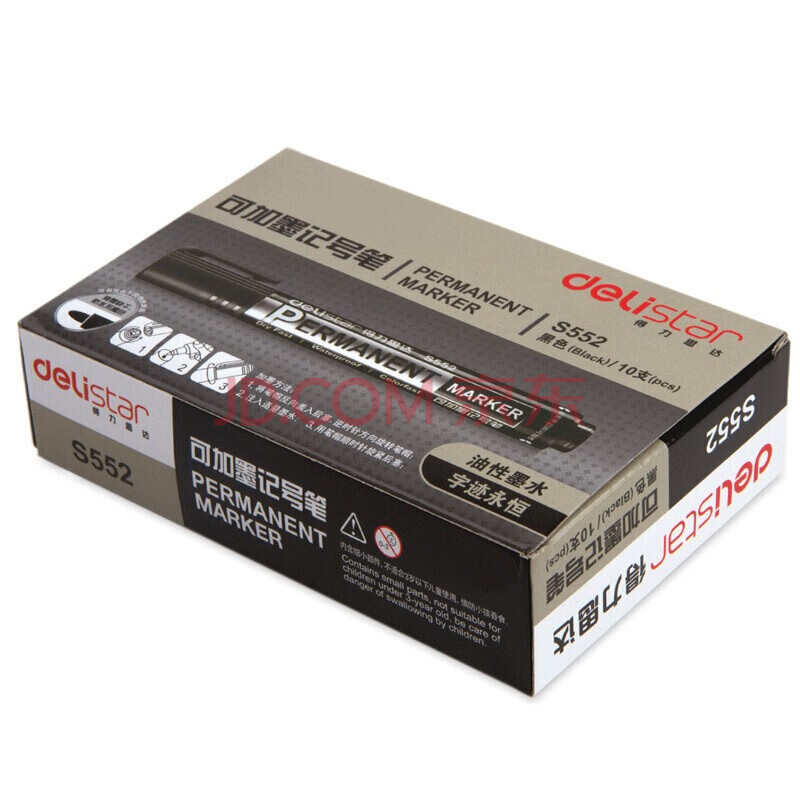商品相册:得力(deli)记号笔s552黑色可加墨油性笔不可擦物流包装笔10支装第