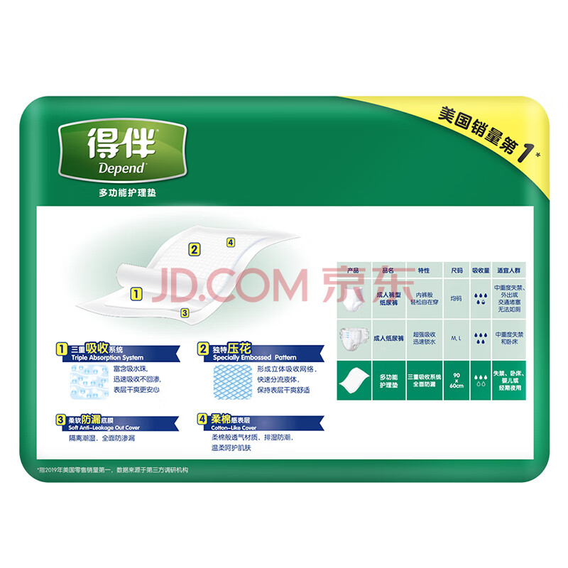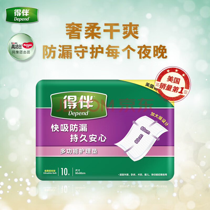 商品相册:得伴(Depend)漏尿护理垫10片60cm*90cm成人老年人一次性护理垫隔尿垫产妇褥垫第1张/共6
