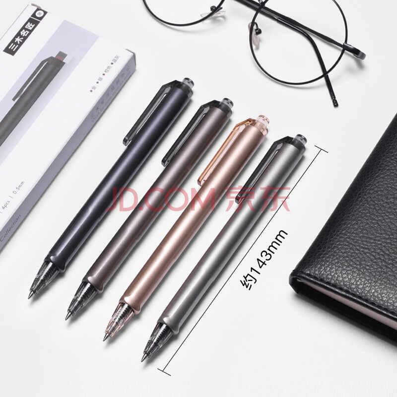 商品相册:三木(SUNWOOD)名匠系列 0.5mm按动式刷题中性笔 高颜值签字笔会议笔子弹头水笔 商务办公用品 4支黑色 MC10第