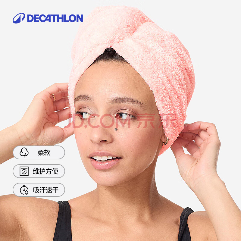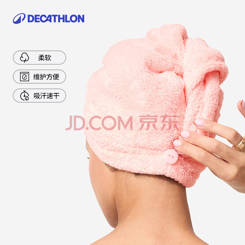 商品相册:迪卡侬游泳速干吸水干发帽洗澡浴巾干发毛巾带扣子浅桃粉2987085第