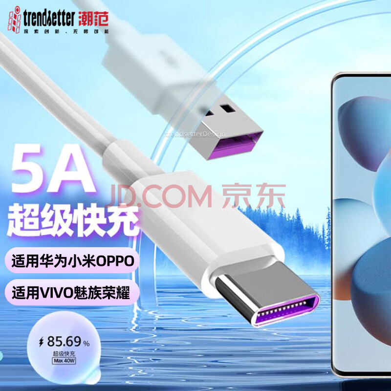 商品相册:trendsetter适用于华为数据线5A充电线66W快充mate/p/畅享/60/50/40/30/20/nova789101112荣耀充电线第