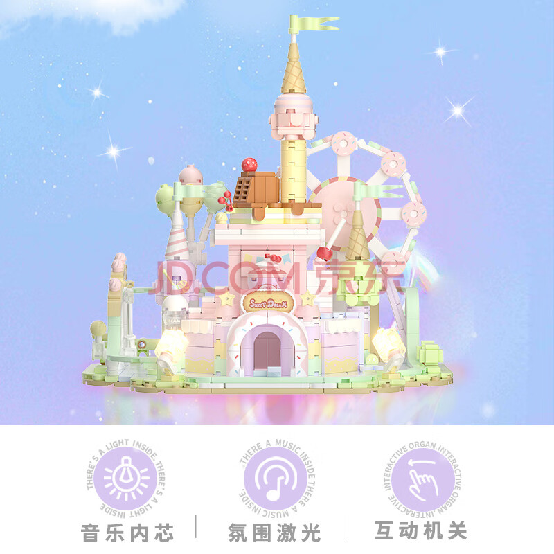 商品相册:未及 国潮积木儿童小颗粒积木解压八音盒潮玩城堡玩具甜品乐园516802第