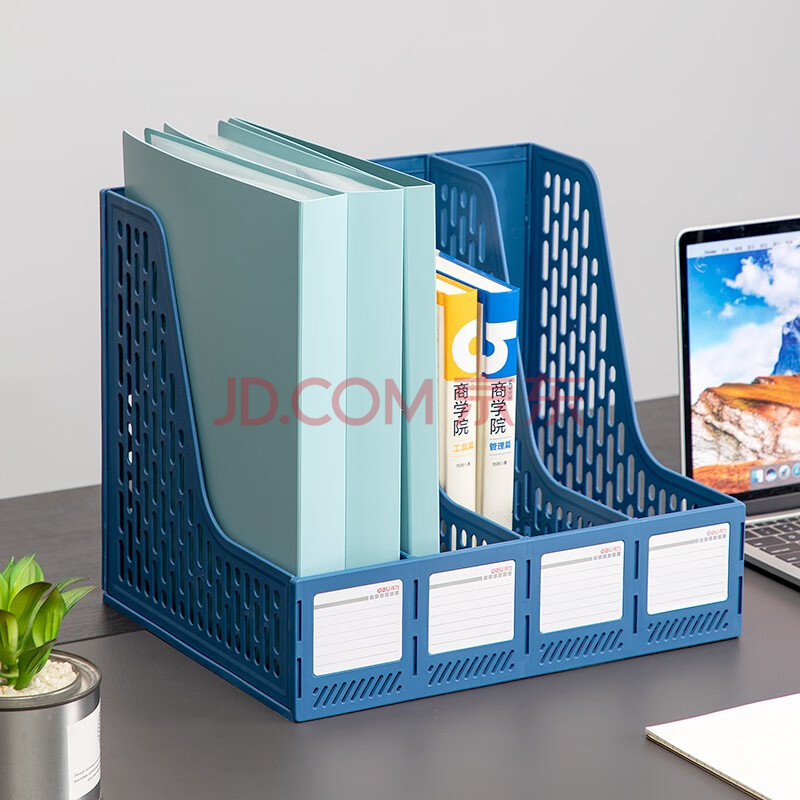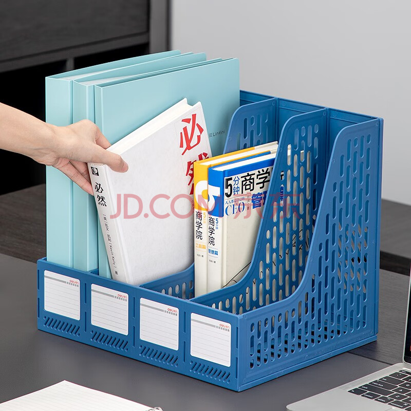 商品相册:得力(deli)文件框78998四联文件框 资料框 办公收纳文件框 资料架 档案文件夹收纳 书立文件座 蓝色第