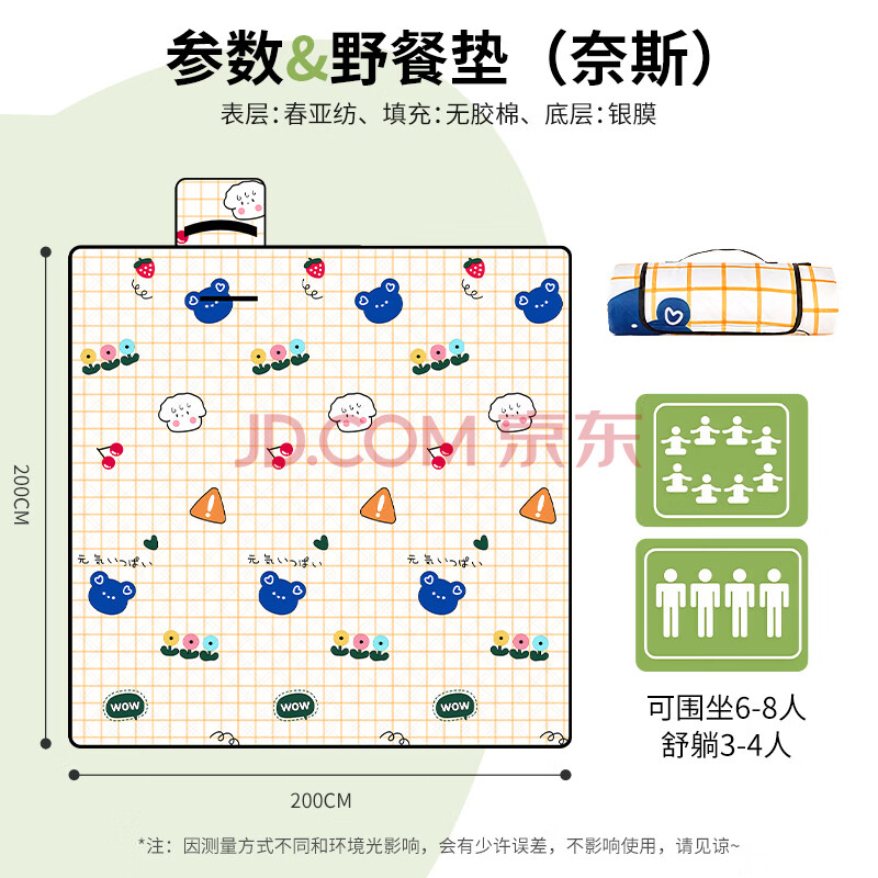 商品相册:尚烤佳(Suncojia)野餐垫 户外防潮垫 沙滩垫 超声波地垫 帐篷垫子 可机洗野营垫子第