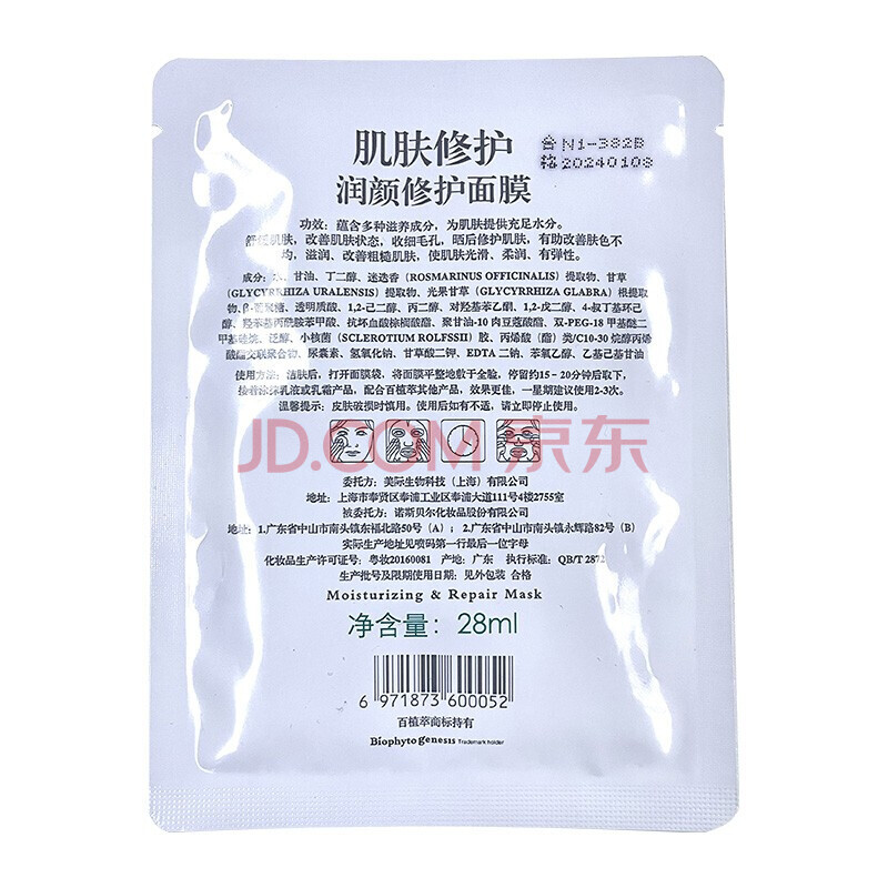 商品相册:百植萃润颜修护面膜 强韧屏障维稳晒后舒缓淡红补水保湿泛醇 敏感肌专研第