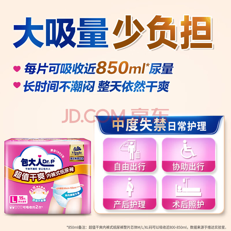 商品相册:包大人(Dr.P)超值干爽成人拉拉裤L90片(腰围:66-135cm)老年人内裤型纸尿裤第