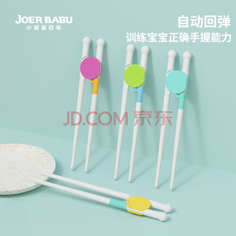 商品相册:小袋鼠巴布(JOER BABU)儿童学习筷子婴儿矫正训练筷 宝宝练习筷学吃饭辅食儿童餐具 练习筷子-蓝色第