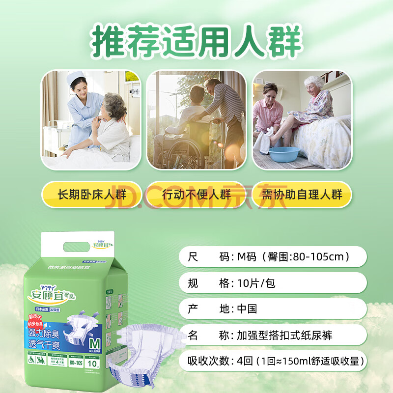 商品相册:安顾宜舒爽加强纳米消臭成人搭扣纸尿裤M10片臀围80-105cm老年人尿不湿第
