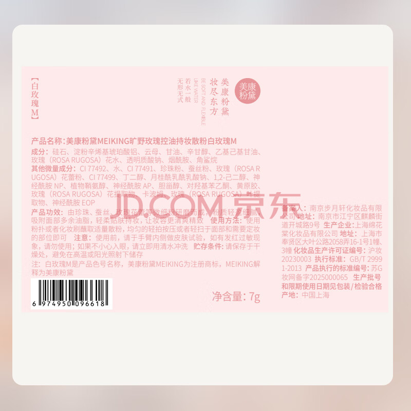 商品相册:美康粉黛散粉定妆粉控油不易脱妆持久定妆防水防汗蜜粉 送礼物白玫瑰7g第