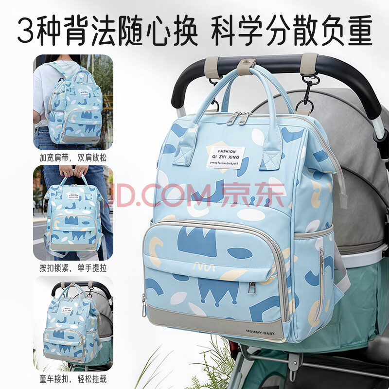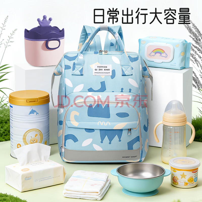 商品相册:爱宝适妈咪包多功能双肩背奶包大容量妈妈包外出母婴包 蓝色皇冠 M224第