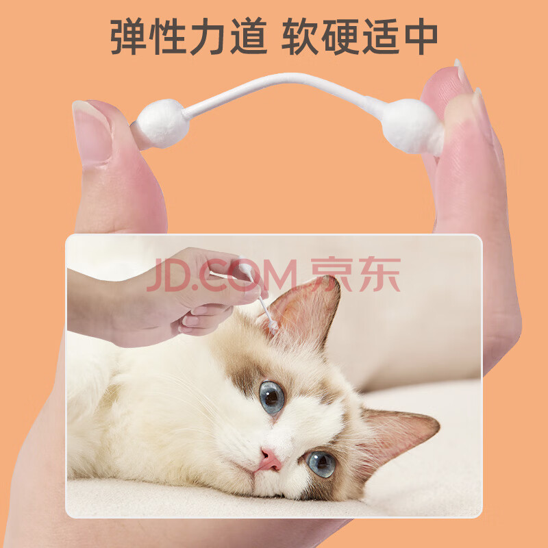商品相册:ERGOBABY宠物棉签狗猫咪双头球形耳螨棉棒洁耳除耳垢耳道清洁用品60支/盒第