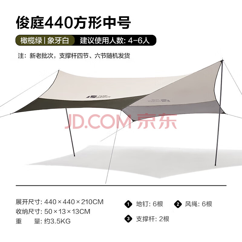 商品相册:牧高笛(MOBIGARDEN)六角天幕户外露营遮阳防晒防雨天幕俊庭升级版 NX20661014 橄榄绿第