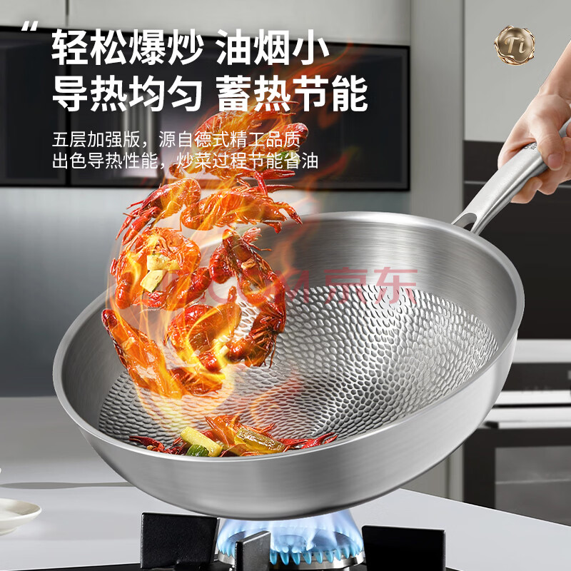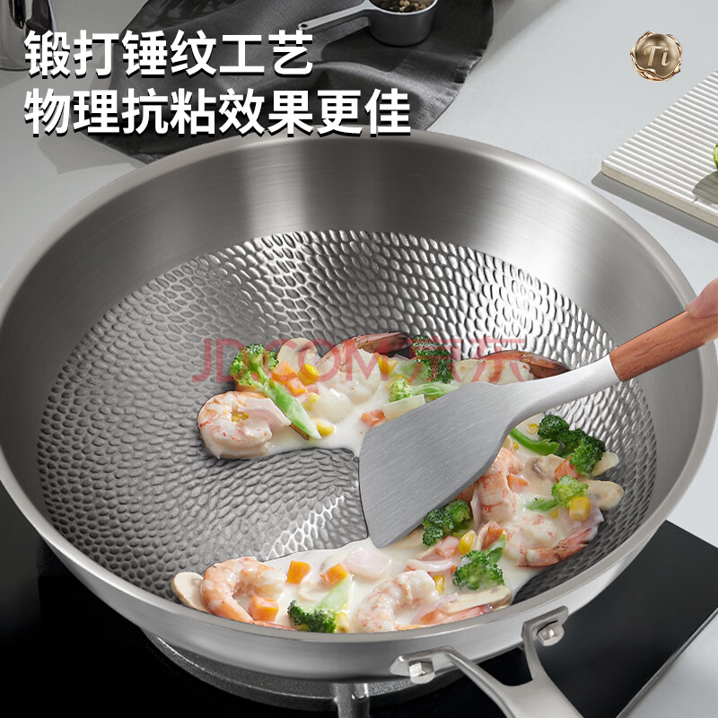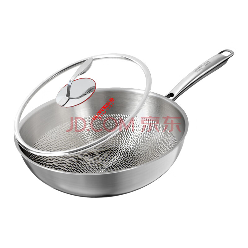商品相册:欧乐菲(OLOFE)0涂层不粘钛炒锅平底少油晶钢钛净化版加深捶打炒菜锅燃气灶32cm第