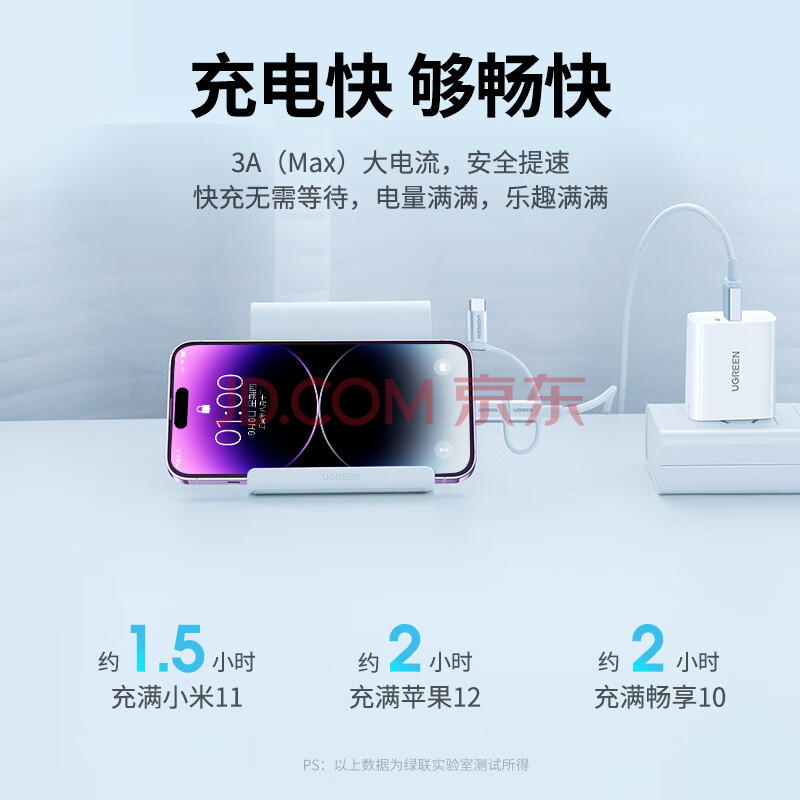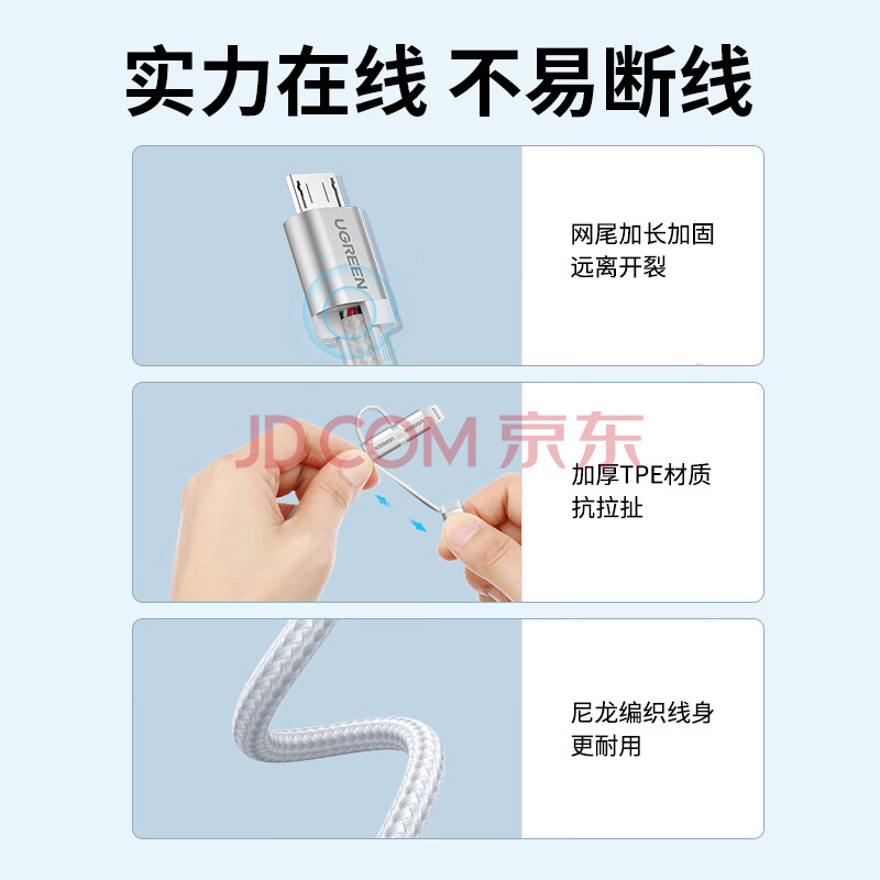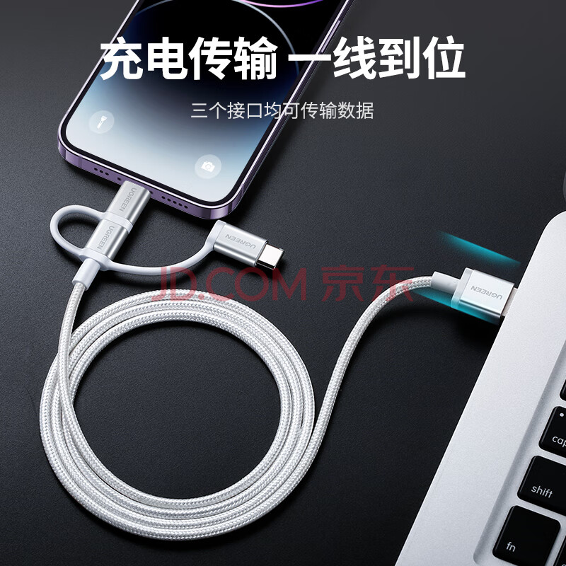 商品相册:绿联【MFi认证不弹窗】充电线三合一数据线一拖三头 车载快充USB多功能Type-C通用苹果/安卓/华为/小米第