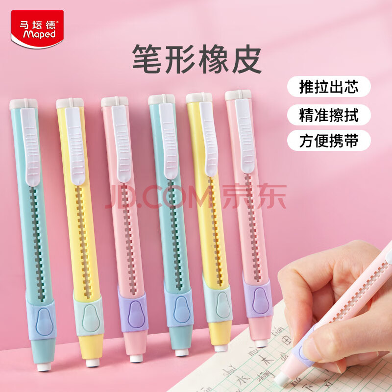 商品相册:马培德Maped 笔形橡皮擦柠檬黄 高颜值橡皮笔按动橡皮擦无屑少屑小学生专用幼儿园推拉开学文具125513CH第