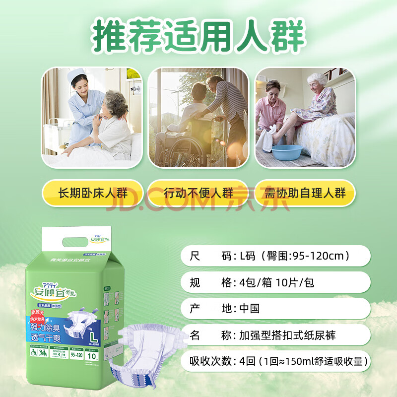 商品相册:安顾宜舒爽加强纳米消臭成人老人纸尿裤L40片 臀围95-120cm老年人尿不湿第