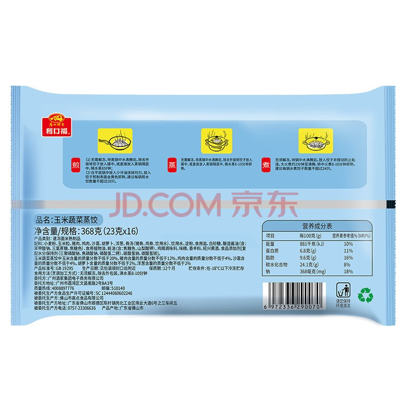 商品相册:广州酒家 玉米蔬菜蒸饺368g*2 32个 早餐宵夜速冻即食饺子年货送礼第