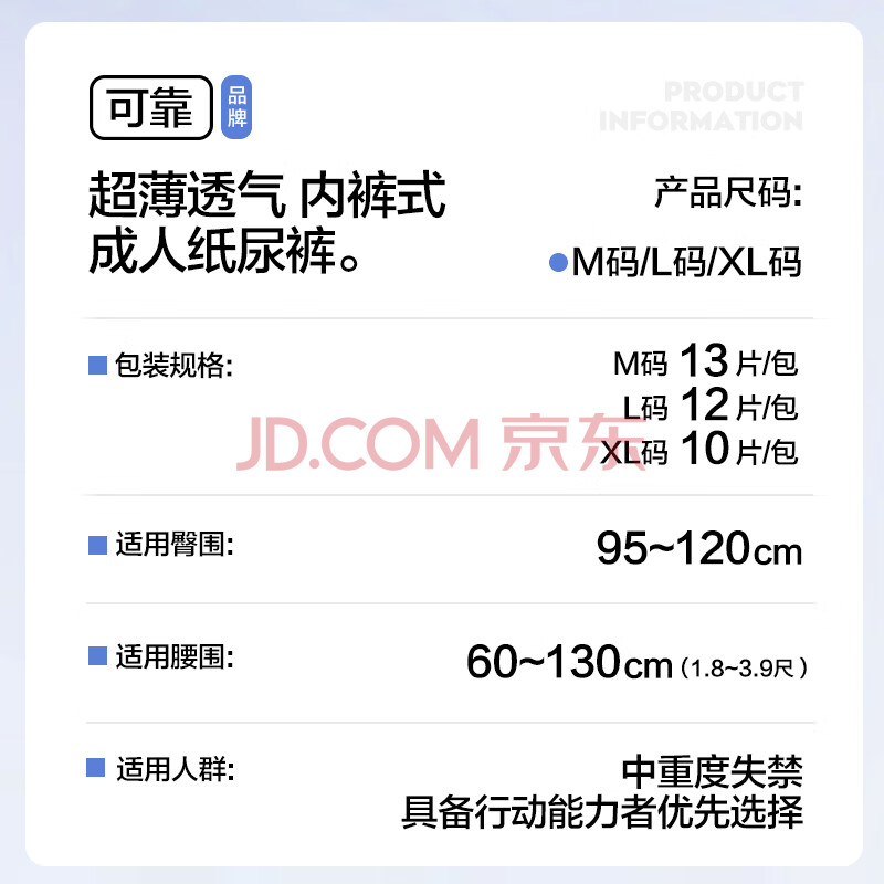 商品相册:可靠(COCO)春夏超薄透气成人拉拉裤L12片(臀围95-120cm )老人内裤型纸尿裤第