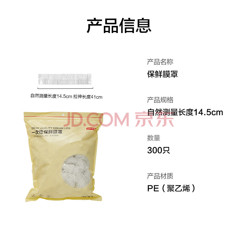 商品相册:京东京造 保鲜罩 保鲜膜套食品保鲜袋 一次性弹力束口大小碗通用【300只】第
