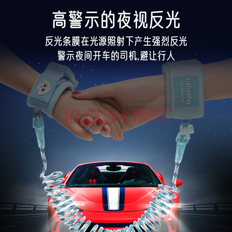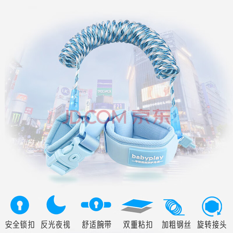 商品相册:爱宝适儿童防走失带牵引绳宝宝防走丢手环安全绳溜娃神器反光蓝2米S121第1张/共7