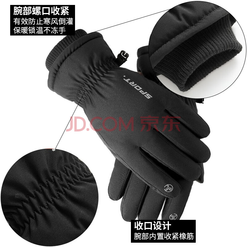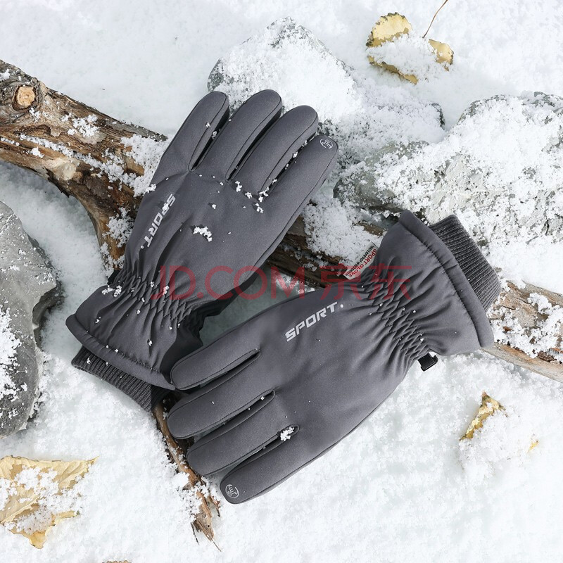 商品相册:永久 手套男冬季加绒加厚防寒保暖冬天户外骑行运动触屏滑雪手套 灰色第
