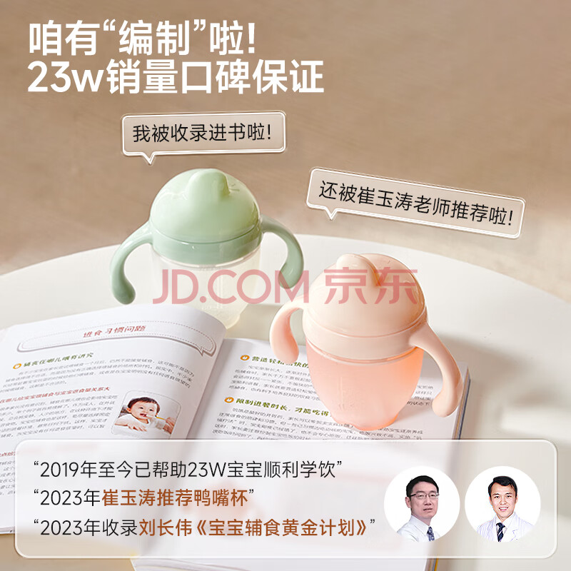 商品相册:爱咔威(igroway)硅胶鸭嘴杯IKV婴幼儿水杯吸管杯4个月大宝宝开学学饮杯 240ml 粉第
