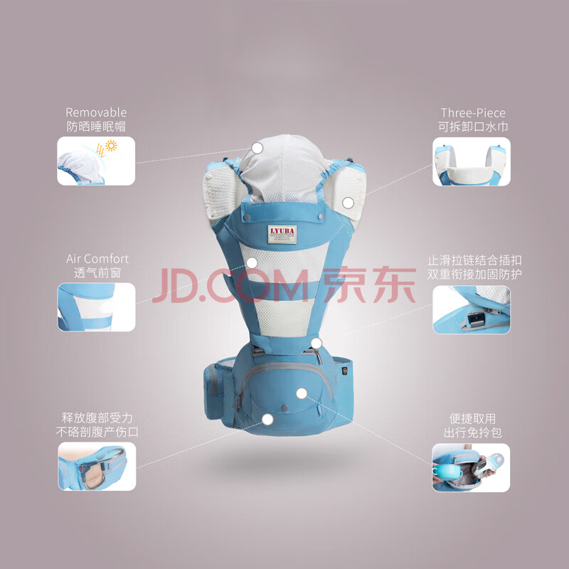 商品相册:柳芭 LYUBA腰凳婴儿背带前抱式抱娃神器多功能坐凳防震背婴带HYA2031松翠蓝第