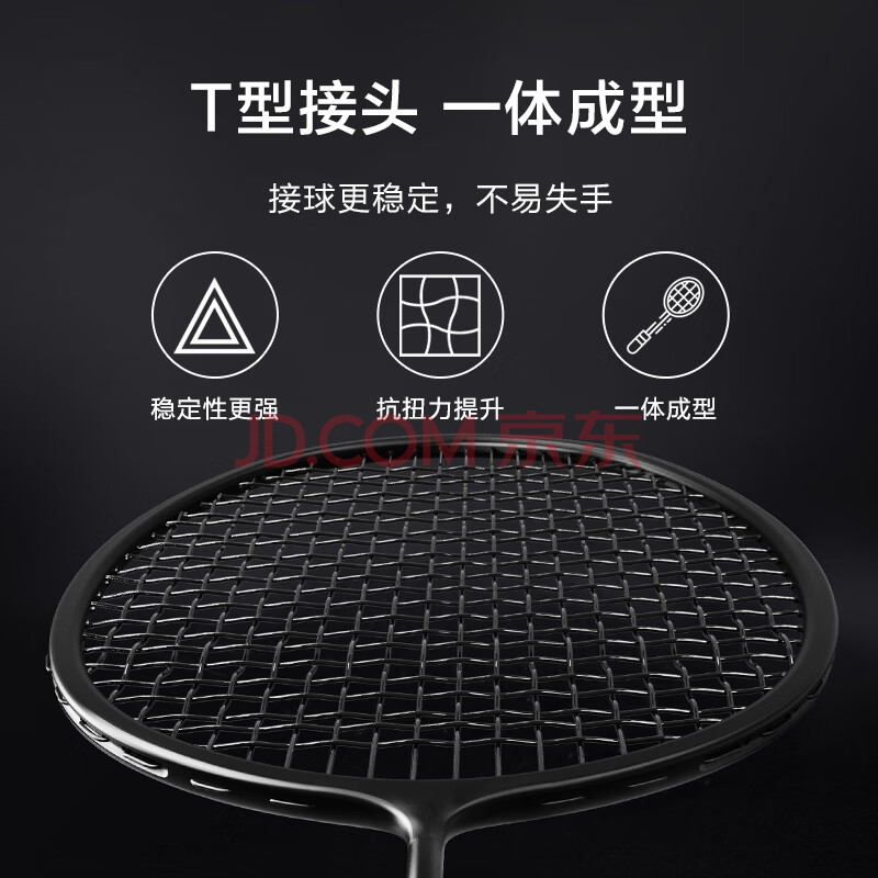 商品相册:京东京造 8U小黑拍 超轻全碳羽毛球拍单拍 运动训练赠球手胶第