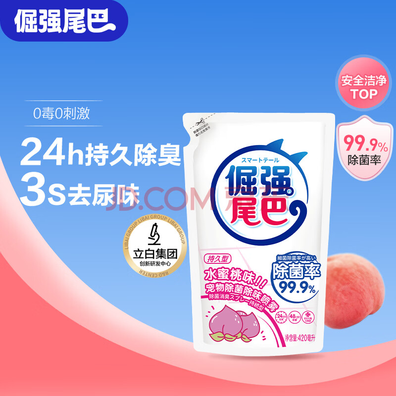 商品相册:倔强尾巴宠物除臭喷雾 去尿味除菌 水蜜桃味补充装420ml 第