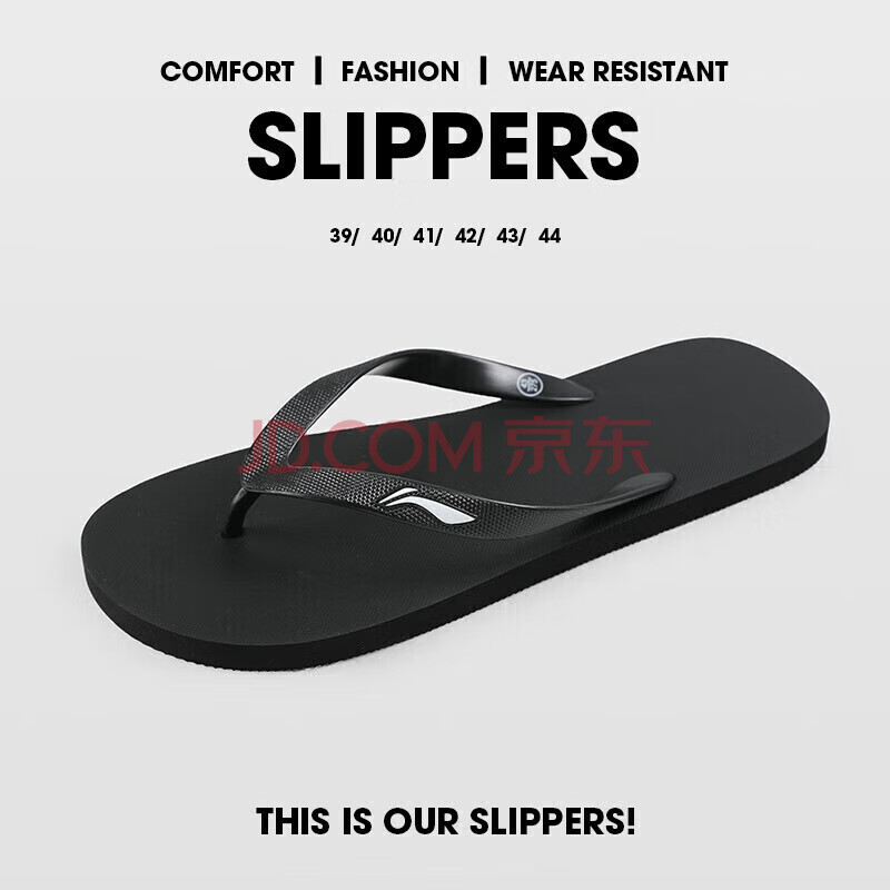 商品相册:李宁(LI-NING)人字拖鞋男女游泳防滑拖鞋夏季外穿软底洗澡防臭防水款凉拖板40码第1张/共8