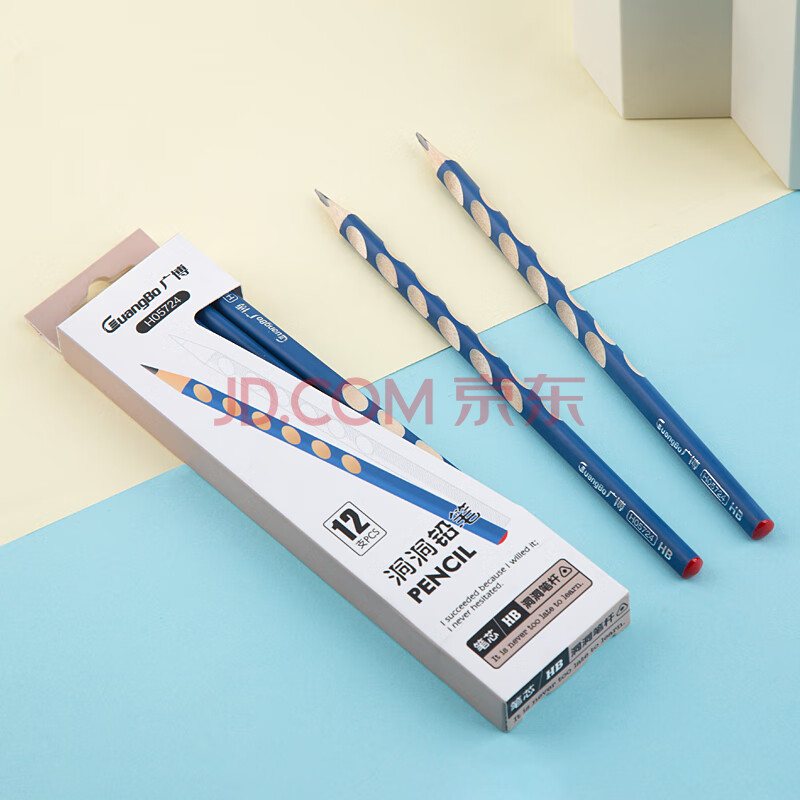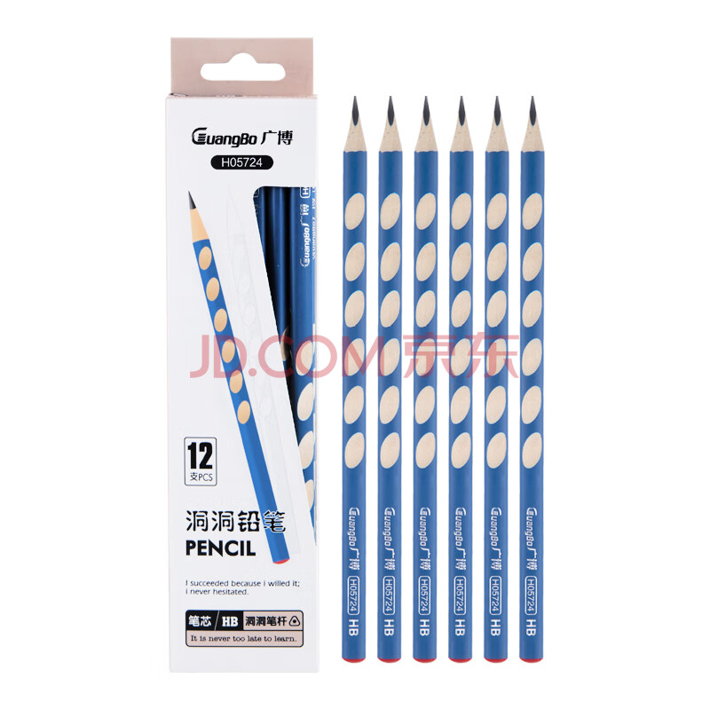 商品相册:广博(GuangBo) 文具铅笔HB洞洞铅笔12支 小学生练字铅笔 儿童正姿矫姿三角木杆沾顶易抓握洞洞笔 H05724第