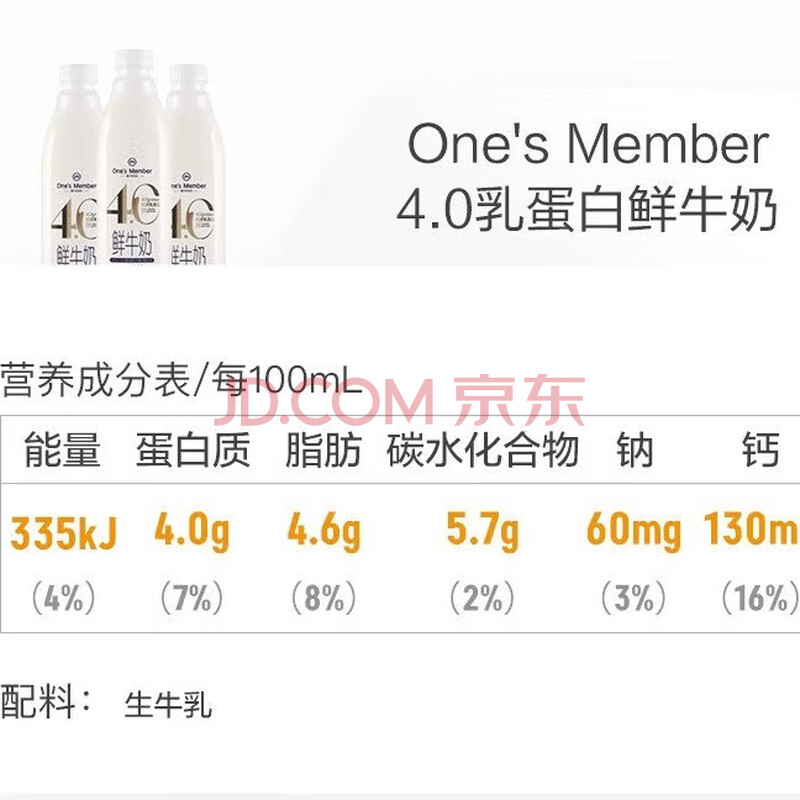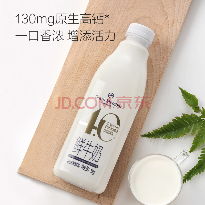 商品相册:1号会员店(One's Member)4.0g乳蛋白鲜牛奶 1kg*2瓶 限定牧场原生高钙早餐奶 巴氏杀菌乳第
