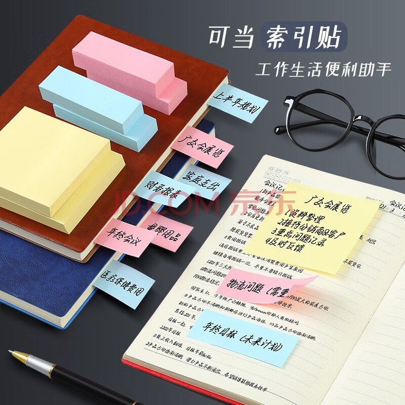 商品相册:嘉然恒 便利贴套装皮质盒装 便签纸条 创意设计大小号彩色组合粘性纸 百事标记易事记N次贴 红色盒第