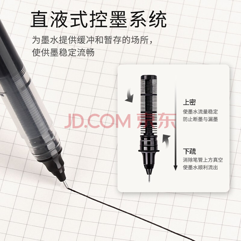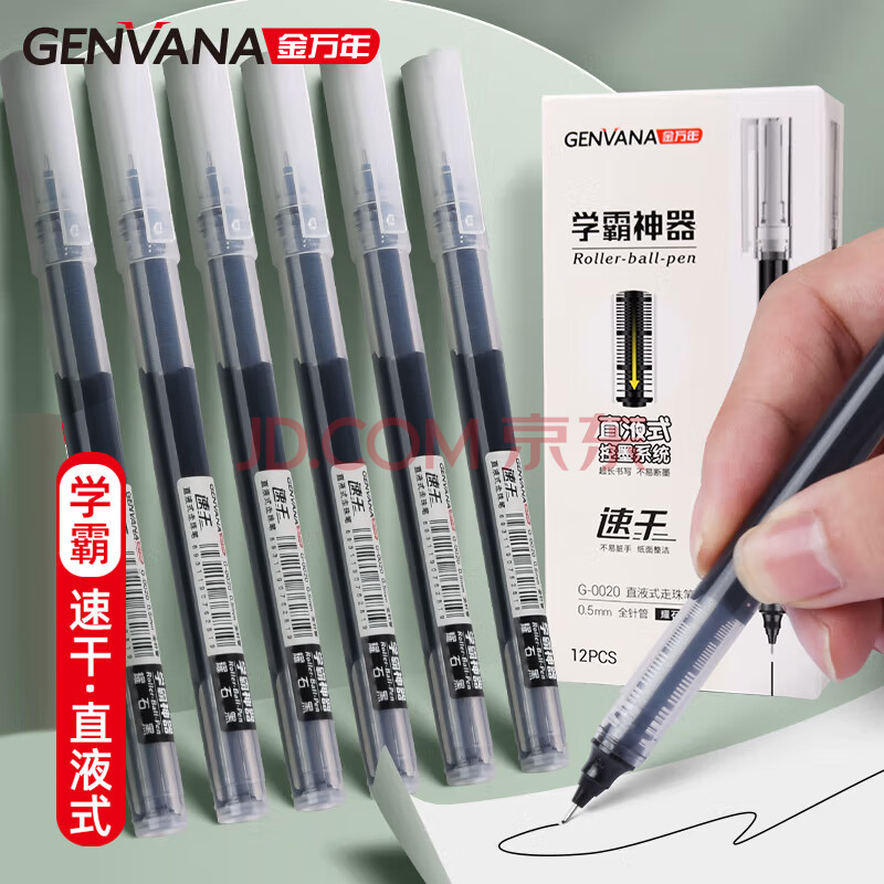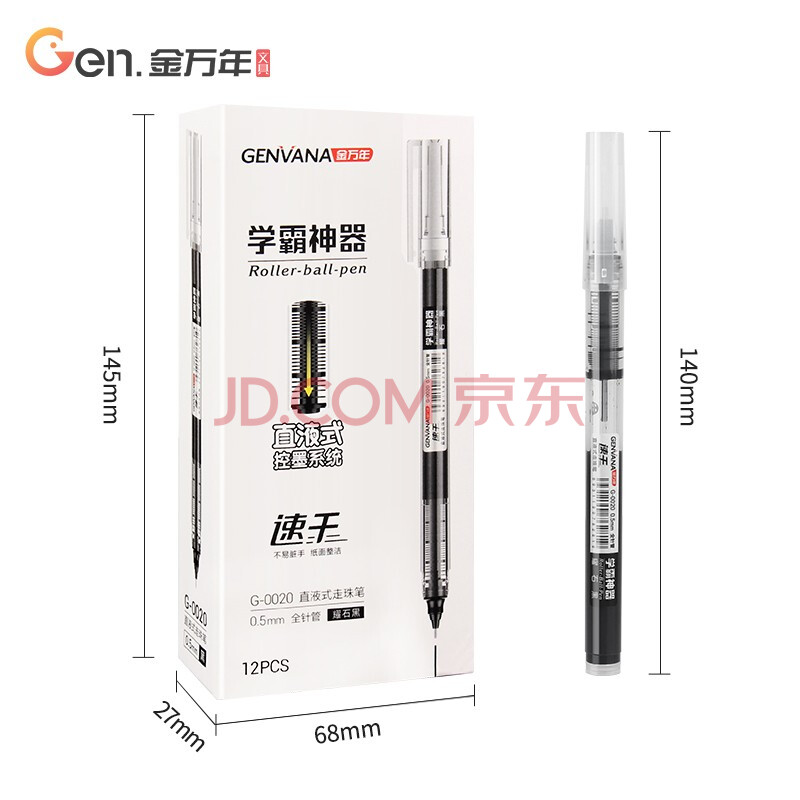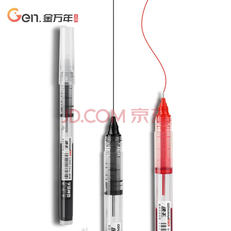 商品相册:金万年速干0.5mm黑色直液式走珠笔中性笔大容量全针管签字笔学生办公碳素水笔12支/盒G-0020-001第