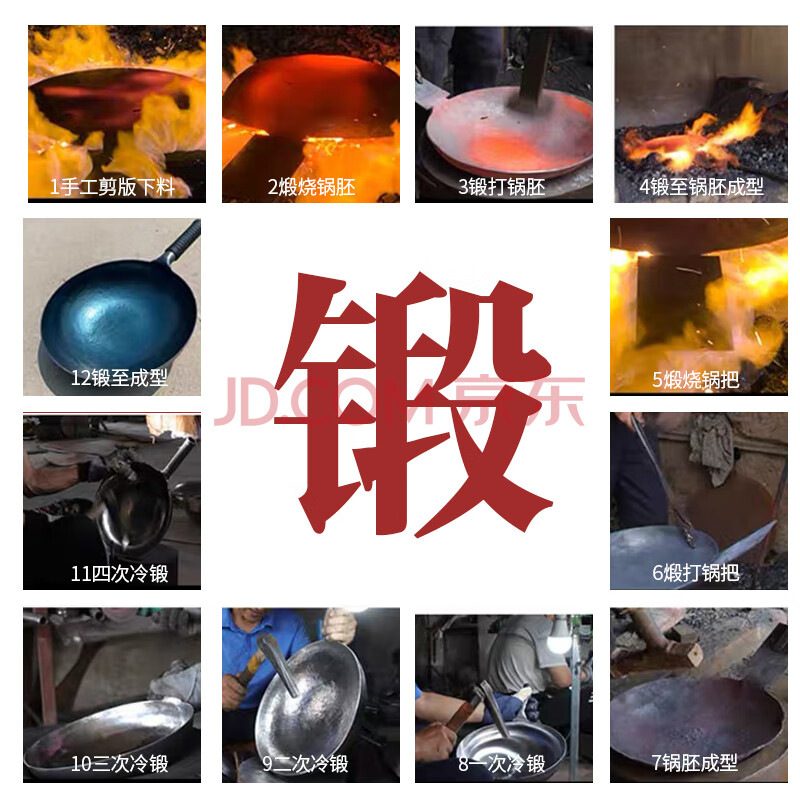 商品相册:欧乐菲(OLOFE)老关东章丘黑炒菜锅铁锅家用老式圆底无涂层手大炒勺熟铁大师34cm第