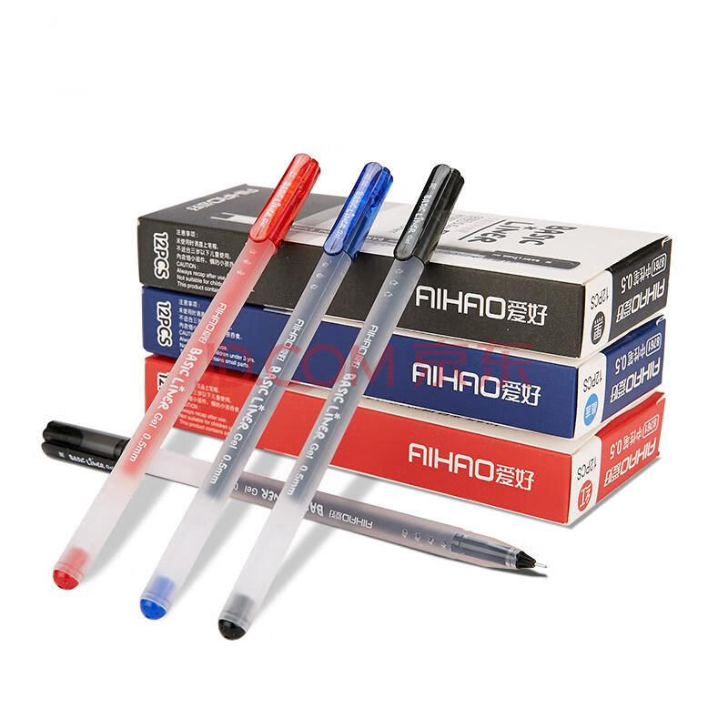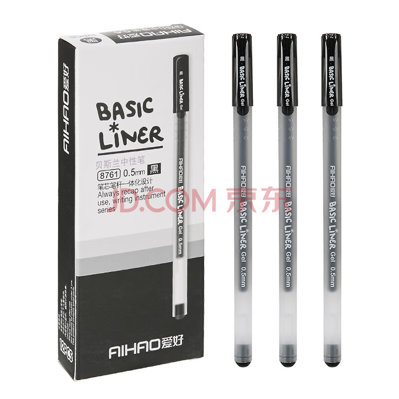 商品相册:爱好(AIHAO)签字笔大容量中性笔0.5MM全针管黑色中性笔办公用品高颜值一体式黑笔12支/盒 8761第