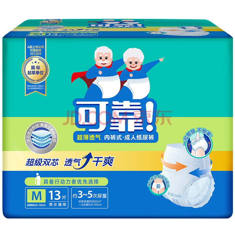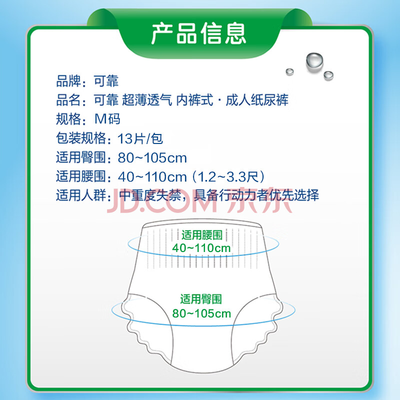 商品相册:可靠(COCO)春夏超薄透气成人拉拉裤M13片(臀围80~105cm)老人内裤型纸尿裤第