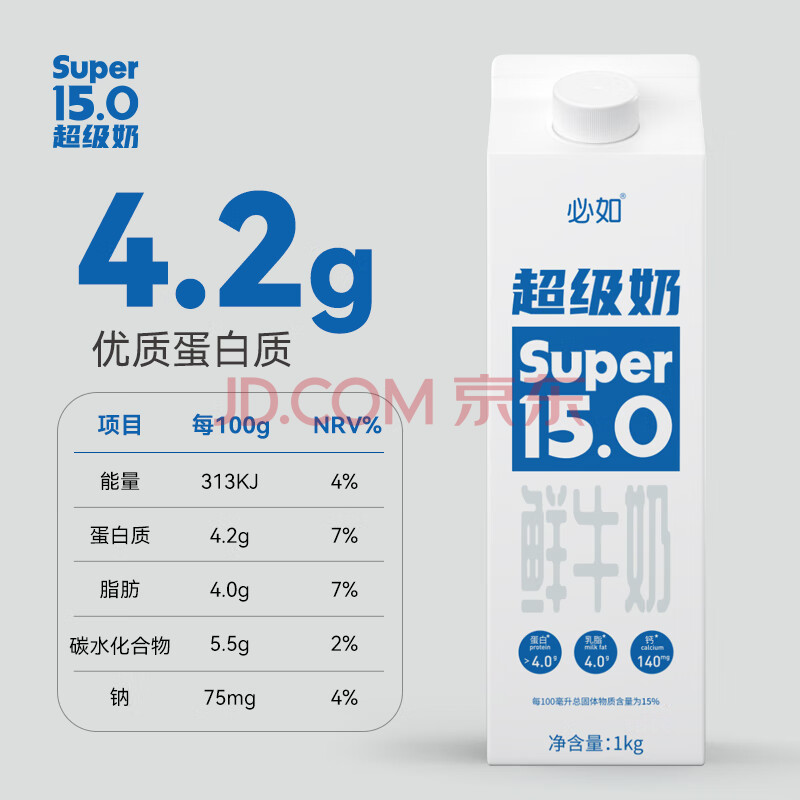 商品相册:必如超级奶1kg*1 低温奶4.2g蛋白高钙巴氏杀菌奶鲜牛奶 配料干净 鲜奶第