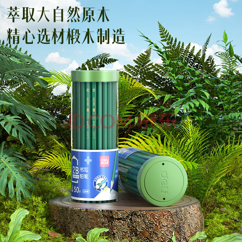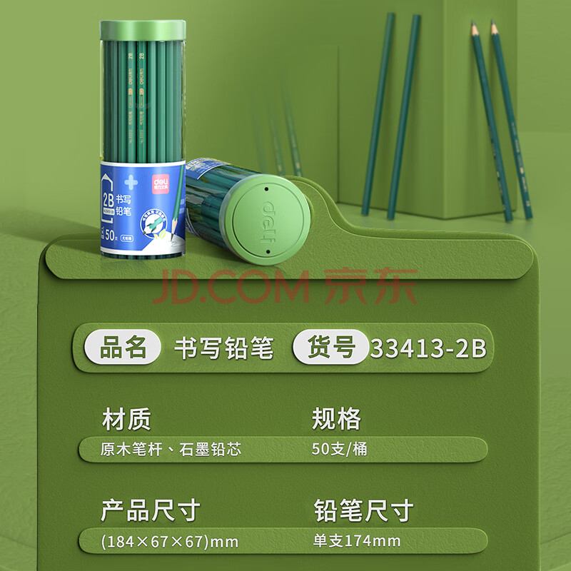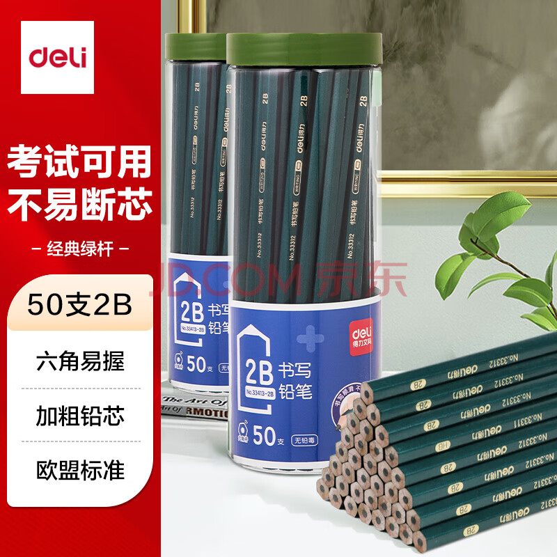 商品相册:得力(deli)50支2B绿杆铅笔六角杆学生考试绘图铅笔书写铅笔33413-2B学生开学文具第