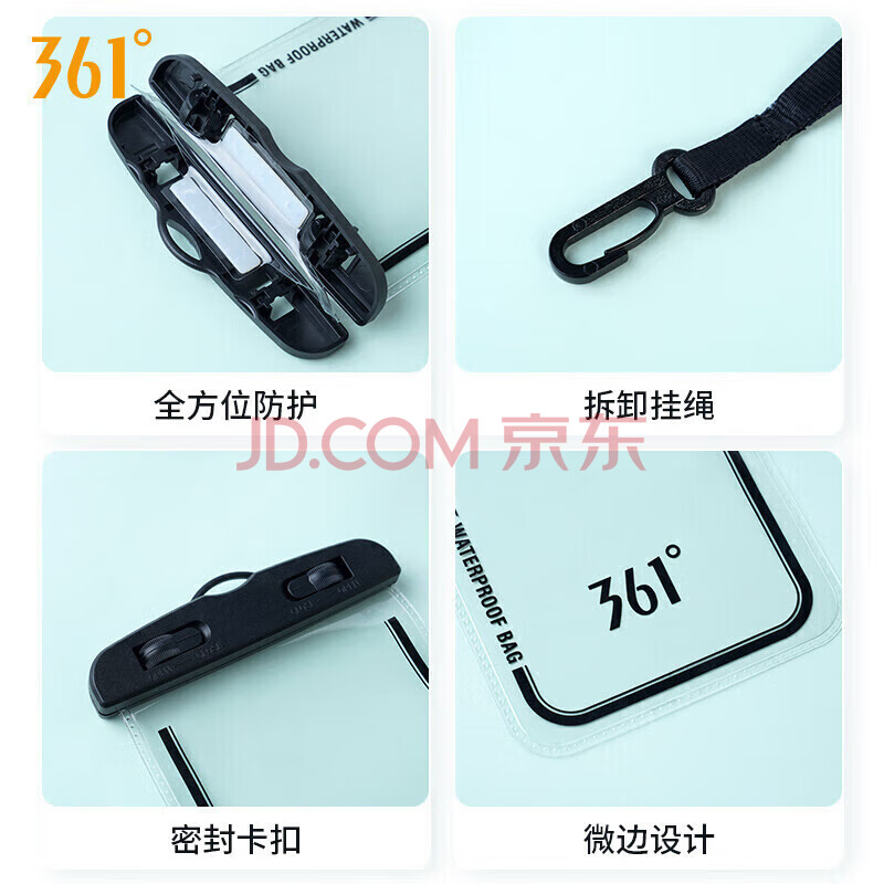 商品相册:361°手机防水袋潜水套漂流触屏水下拍照通用挂绳外卖骑手专用防雨壳第