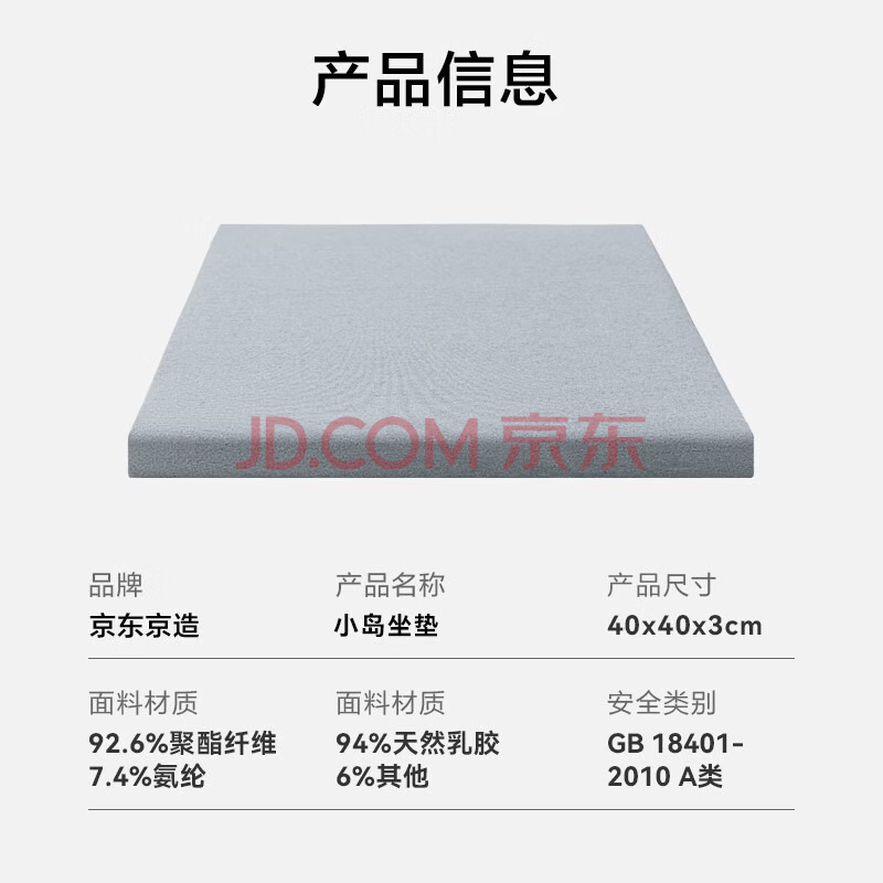 商品相册:京东京造 94%天然乳胶小岛坐垫 泰国原芯进口ECO优等品A类抑菌防螨坐垫第